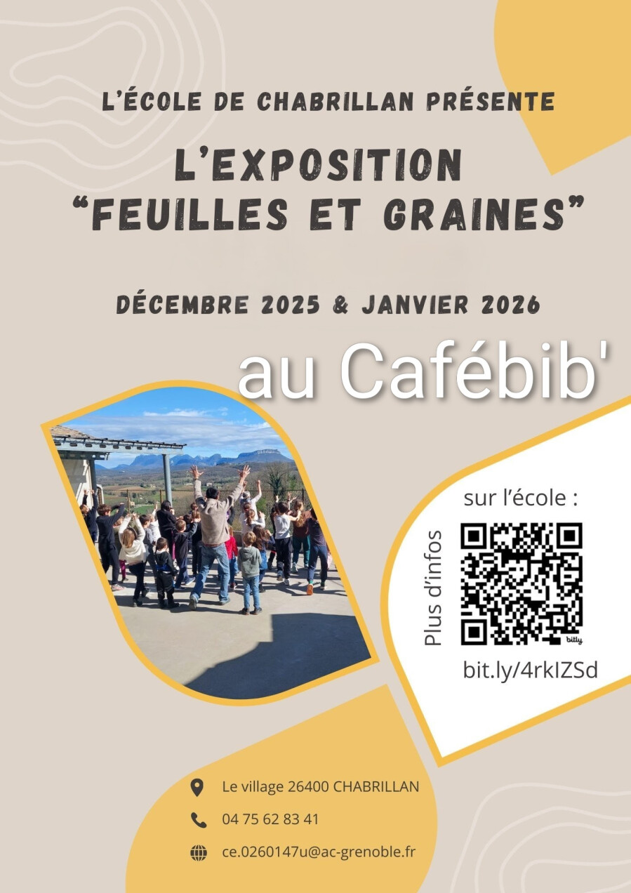 Exposition de l’école “Feuilles et Graines” 3 Déc 2025 03/12/2025 - 31/01/2026 0 h 00 Cafébibliothèque ← retour à la liste