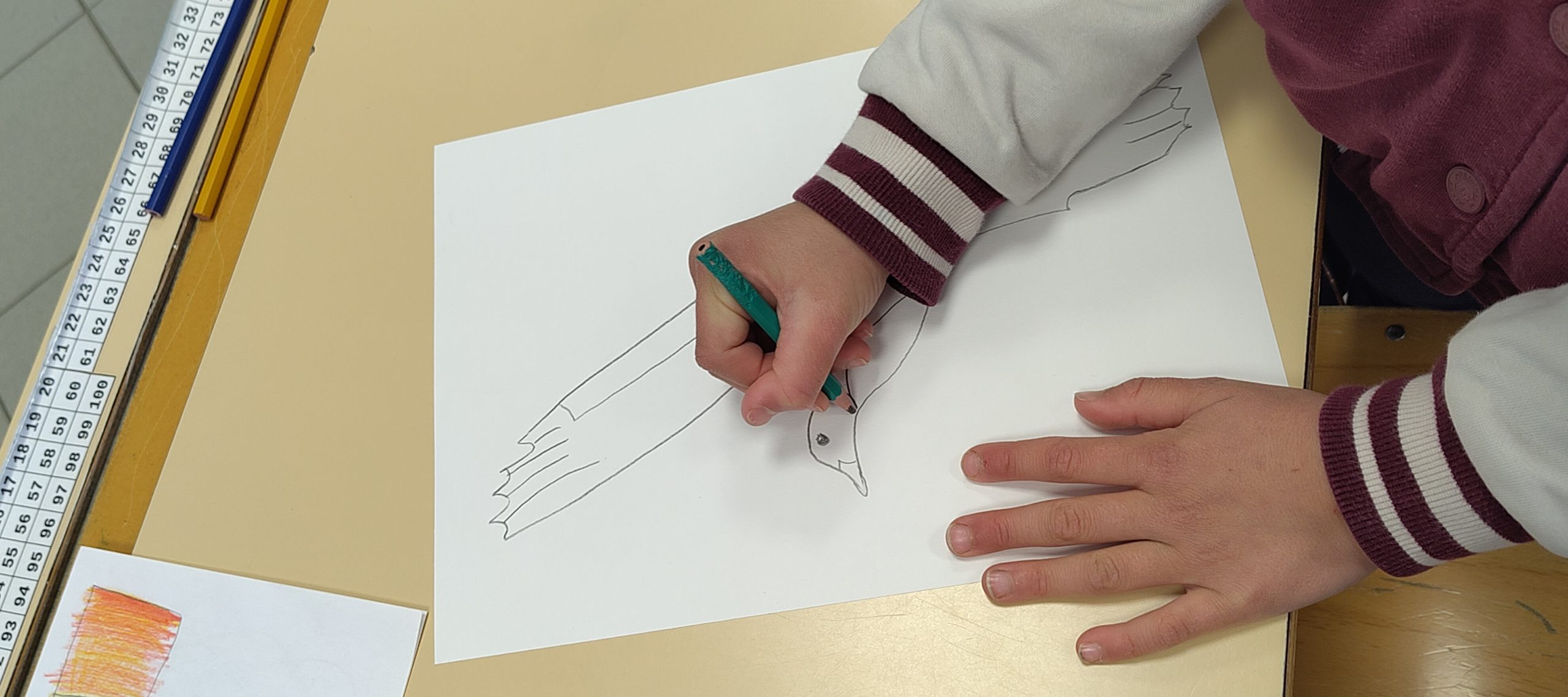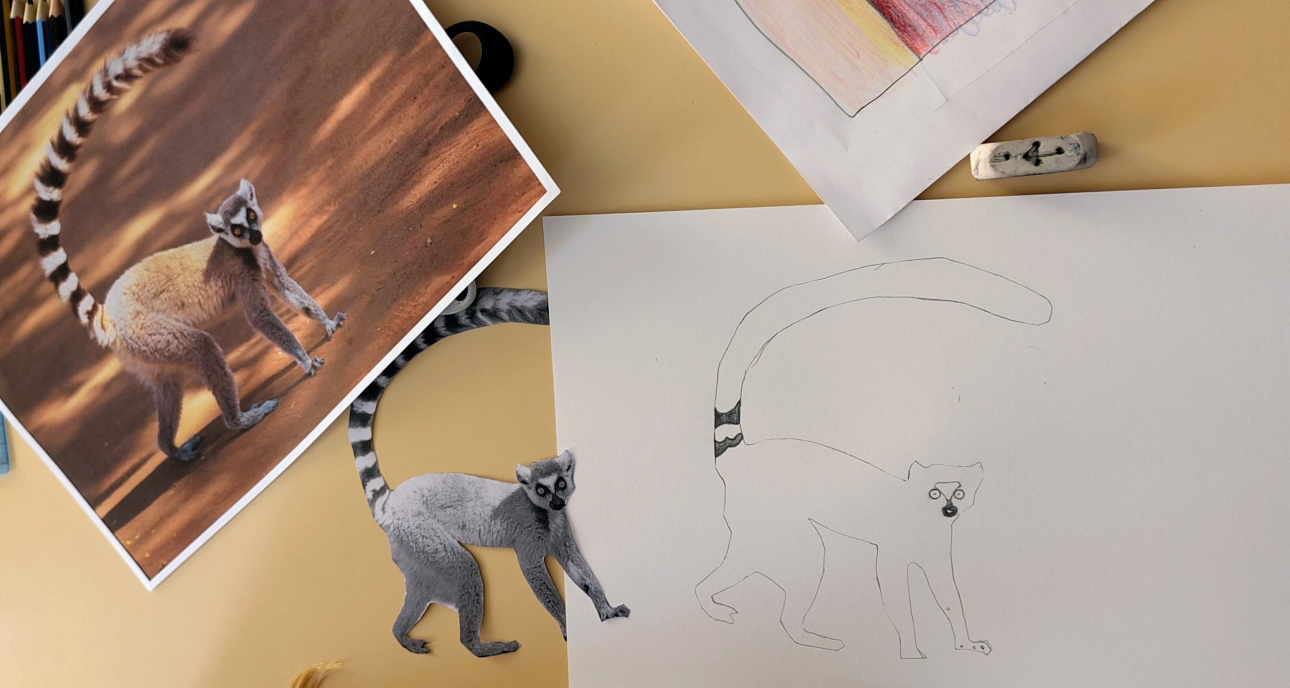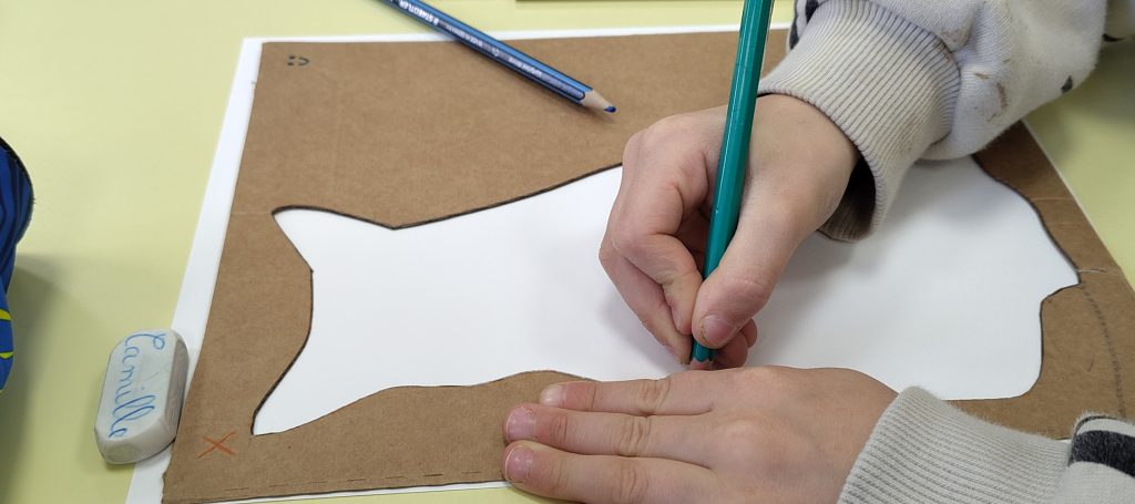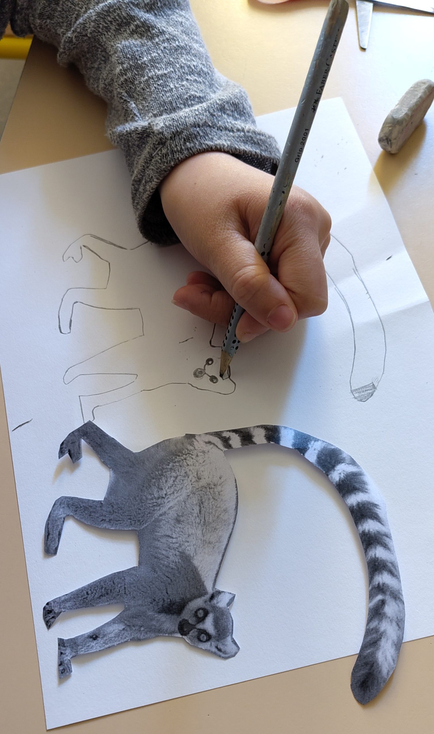 Elle a guidé les élèves à travers une approche progressive du regard et du geste. Après un échauffement (le dessin, c’est comme le sport : c’est du travail !), ils ont réalisé le dessin d’un animal à partir d’une photographie.