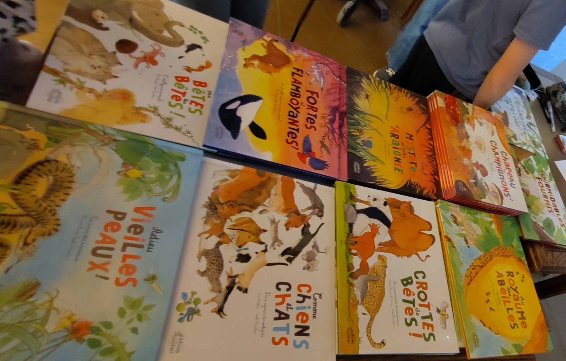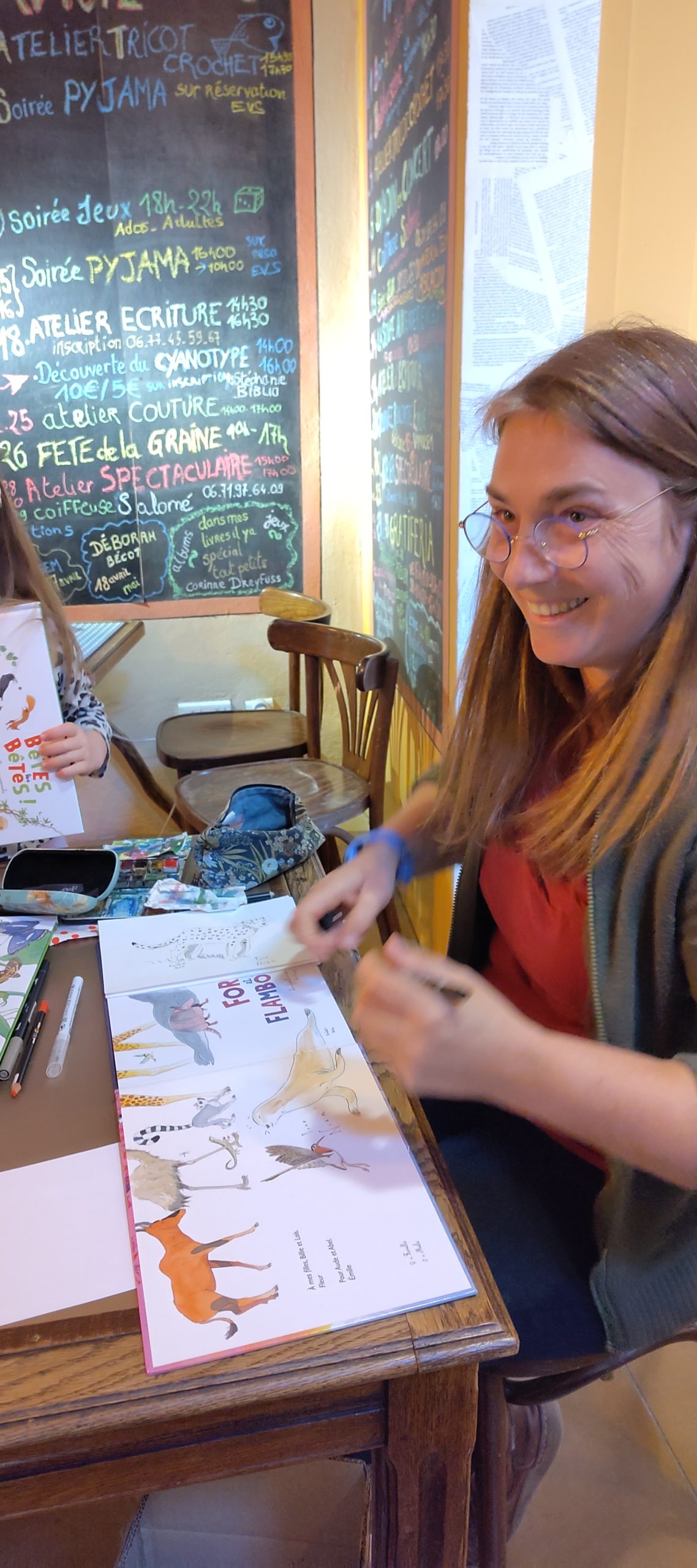 L’atelier était précédé d’un temps d’échange autour du travail de l’artiste. Vendredi 13 mars, au cafébibliothèque, les élèves avaient pu découvrir l’exposition (visible jusqu’au 17 avril) de ses œuvres originales et, depuis quelques semaines, ils avaient également lu en classe les livres documentaires qu’elle a illustrés.